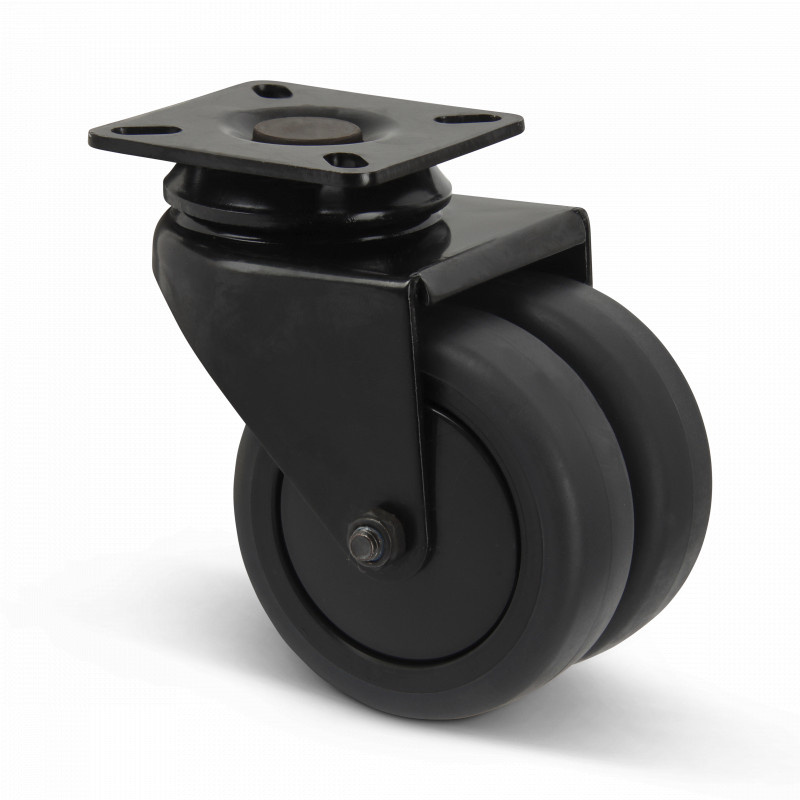 Dubbel zwart zwenkwiel 75 mm - plaat - 120 kg
