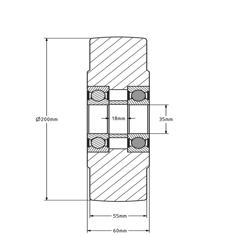Gietnylon wiel 200 mm met kogellager asgat 35 mm - 3000 kg