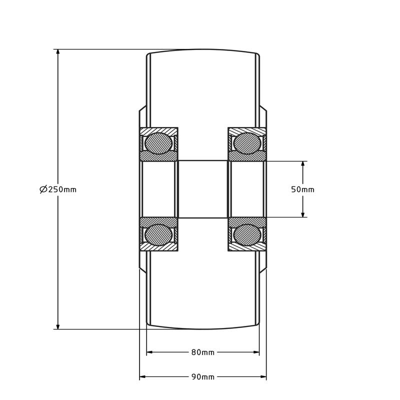 Gietnylon wiel 250 mm met kogellager asgat 50 mm - 6000 kg