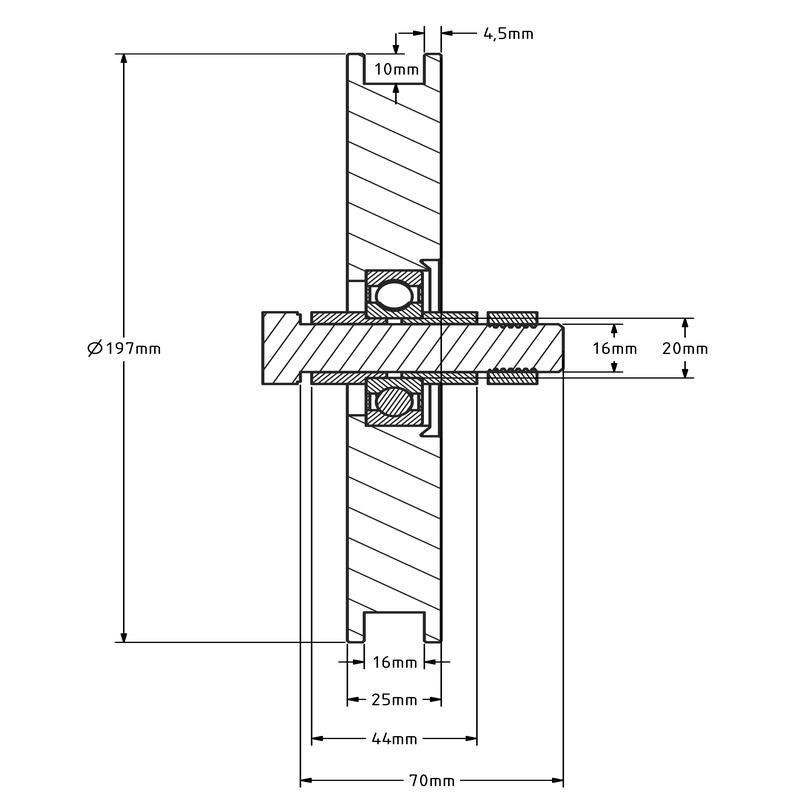 Groefwiel 197 mm staal met vierkante groef - 330 kg (kabelschijf)
