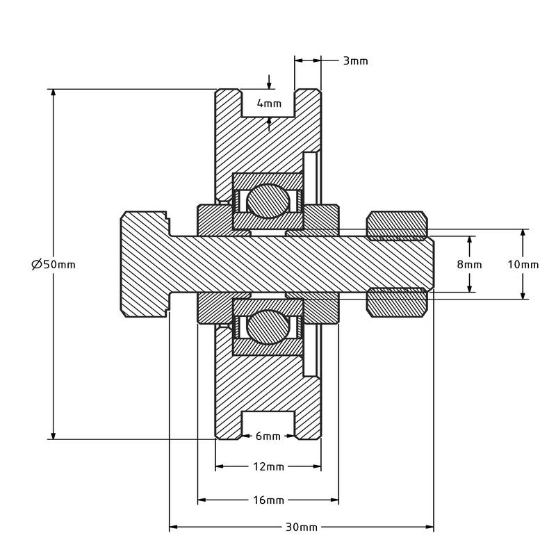 Groefwiel 50 mm met vierkante groef - 70 kg