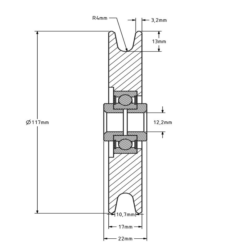 Kabelschijf 120 mm met U groef - 240 kg
