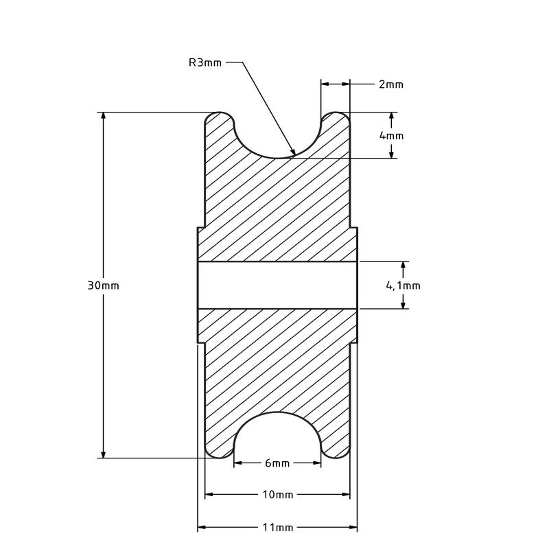 Gietijzer kabelschijf 30 mm met u groef - 15 kg (groefwiel)