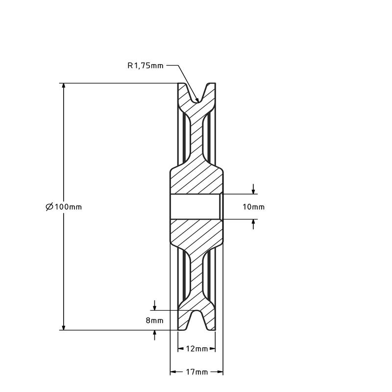 Kunststof kabelschijf 100 mm met u groef - 85 kg (groefwiel)