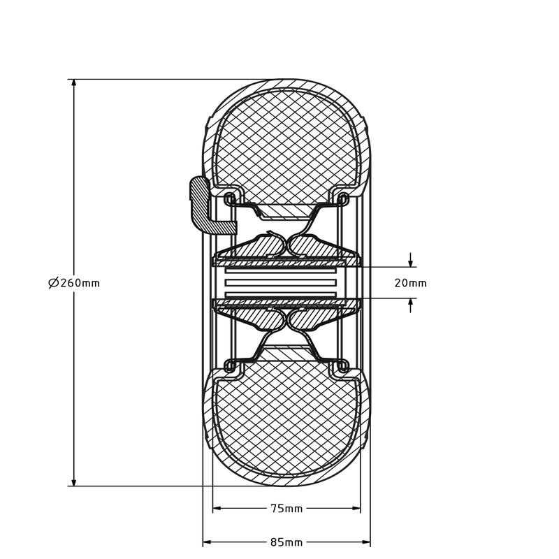 Luchtbandwiel 260x85 mm - blokprofiel - 200 kg