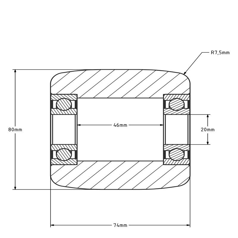 Nylon palletrol 80x74 mm met kogellager asgat 20 mm - 700 kg
