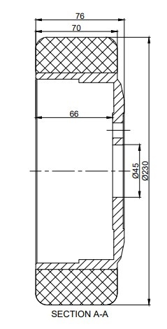 Aandrijfwiel Ø 230 x 70 mm met een Polyurethaanband.