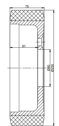Polyurethaan aandrijfwiel 250x75 mm - Boring 80 / 5x16/29 / flens