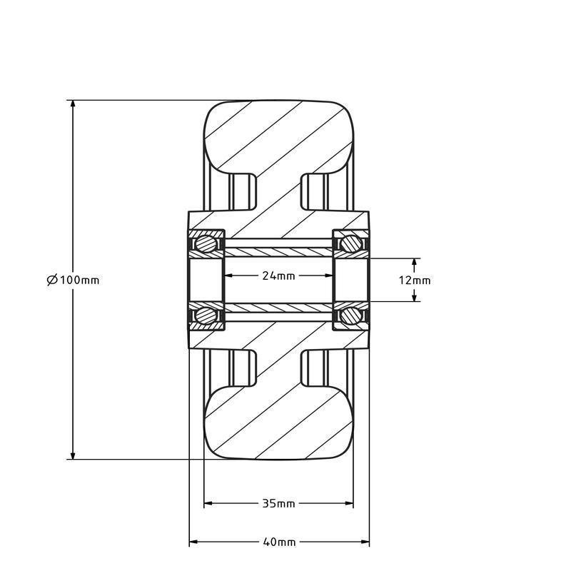 PU wiel 100 mm - kogellager asgat 12 mm - 180 kg
