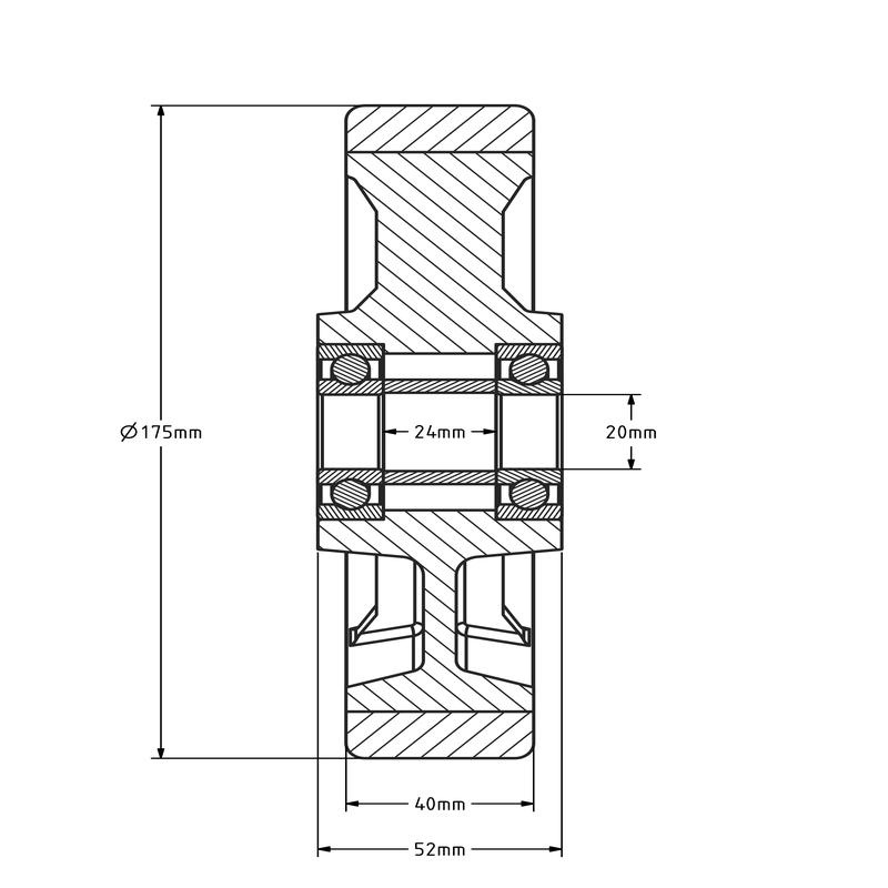 PU wiel 175 mm met kogellager asgat 20 mm - 650 kg