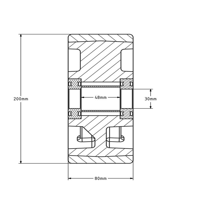 PU wiel 200 mm met kogellager asgat 30 mm - 1500 kg