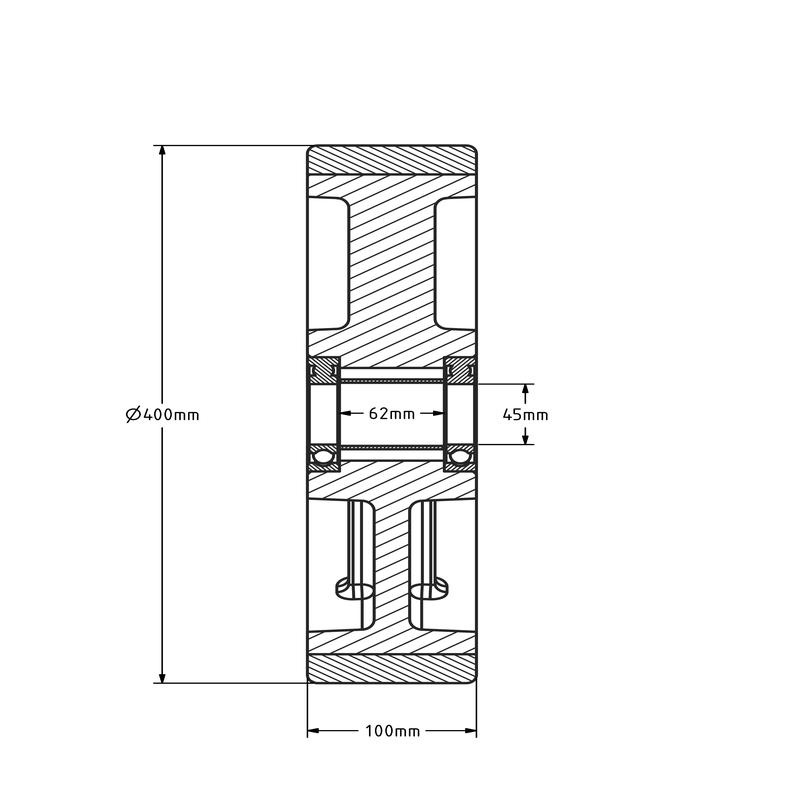 PU wiel 400 x 100 mm met kogellager asgat 45 mm - 4000 kg