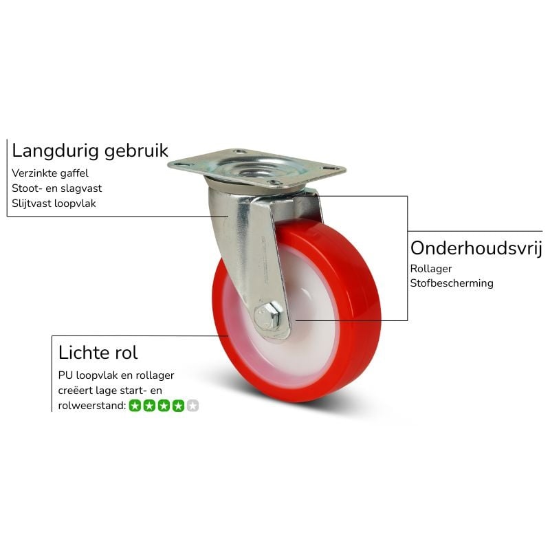 PU zwenkwiel 125 mm met plaatbevestiging - 200 kg