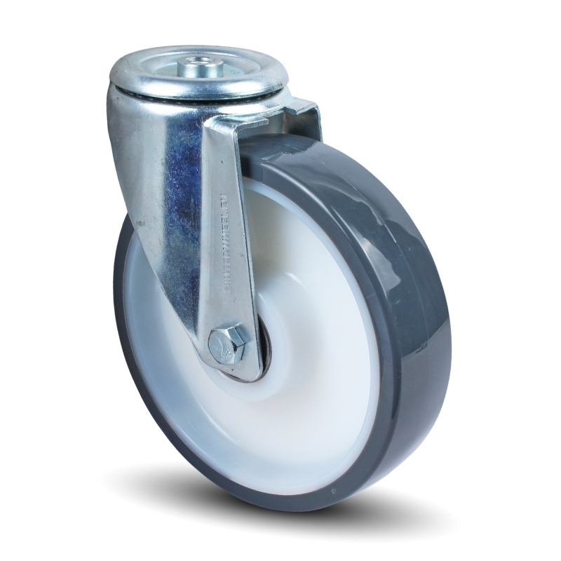 Een 200 mm PU-zwenkwiel dat licht rolt, veel draagt en soepel blijft in dagelijks gebruik. Het loopvlak van polyurethaan is geschikt voor omgevingen met stof, vuil en staalkrullen en is daar minder beschadigingsgevoelig dan rubber. PU is bovendien slijtvast en hard zoals nylon, maar met lichte demping zoals rubber. Daardoor combineert het hoge belastbaarheid met goede roleigenschappen. Het wiel is uitgerust met twee kogellagers (6204 2RS), gemonteerd met T-bussen, zodat het spanningsvrij draait. De grote diameter verlaagt de rolweerstand, waardoor het wiel lichter rolt dan kleinere wielen en oneffenheden beter overbrugt.