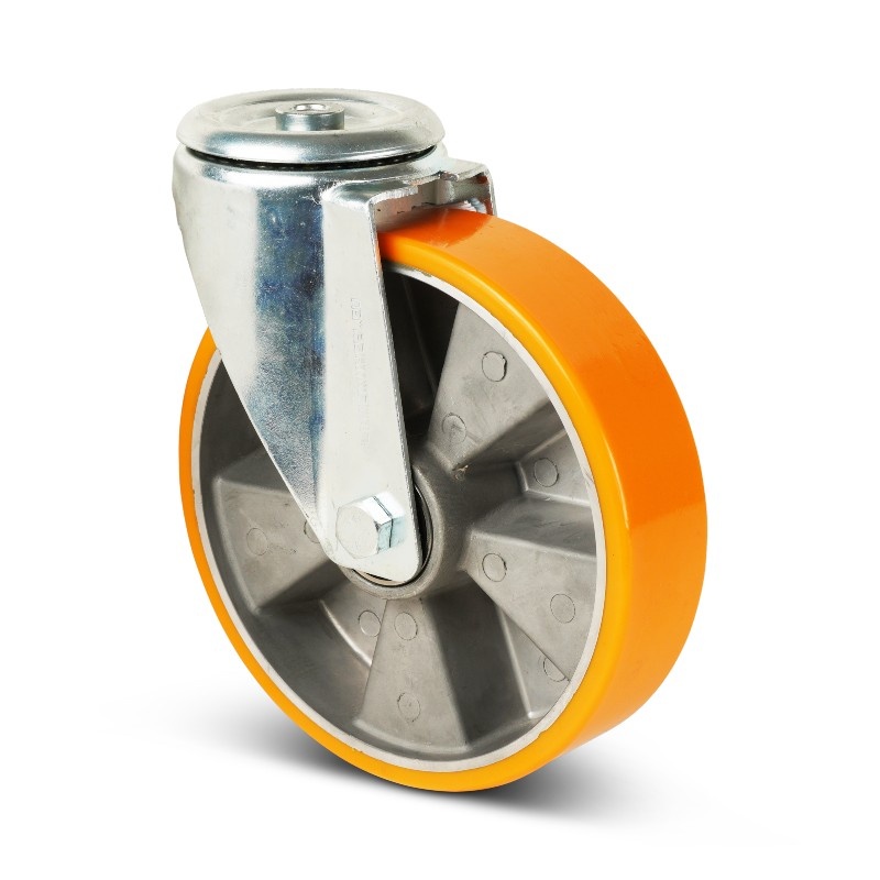 PU zwenkwiel 200 mm met boutgatbevestiging - 400 kg