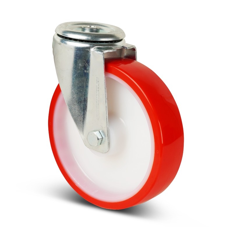 PU zwenkwiel 200 mm met boutgatbevestiging - 400 kg