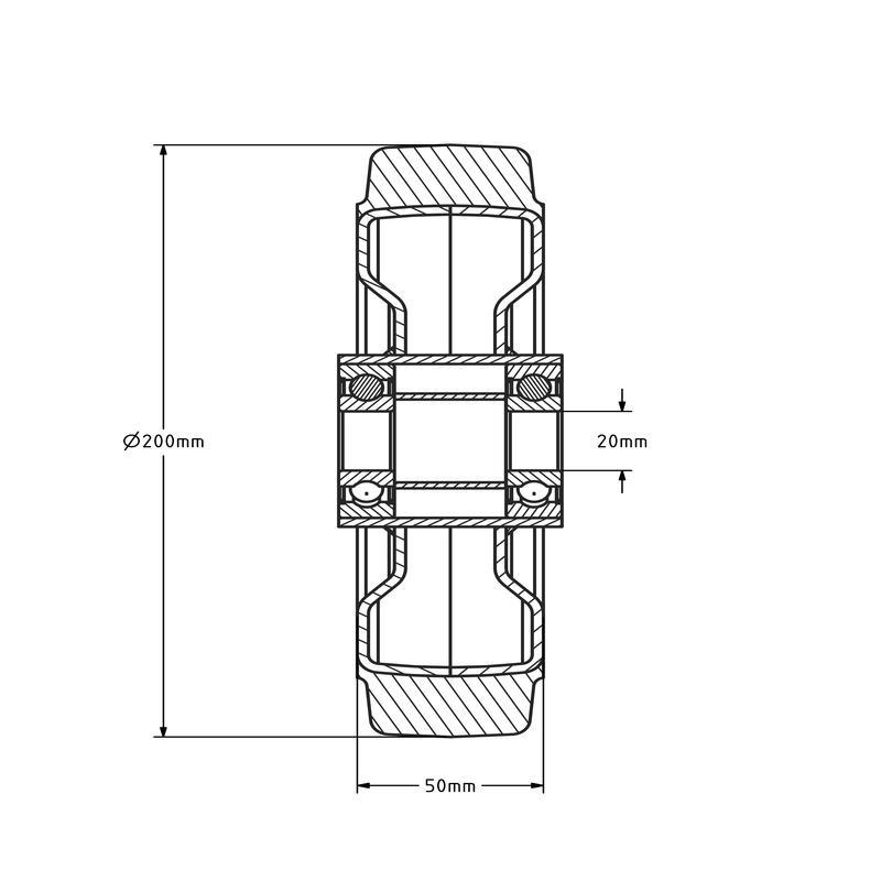Rubber wiel 200 mm - kogellager asgat 20 mm - 550 kg