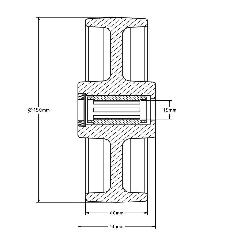 Rvs wiel 150 mm - polyamide - rollager - 400 kg