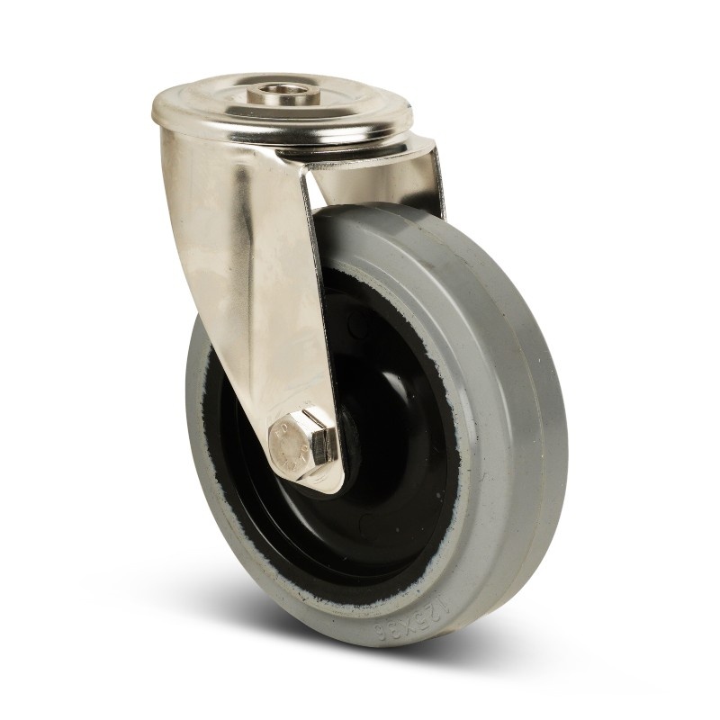Rvs zwenkwiel 125 mm - Elastisch rubber - 190 kg