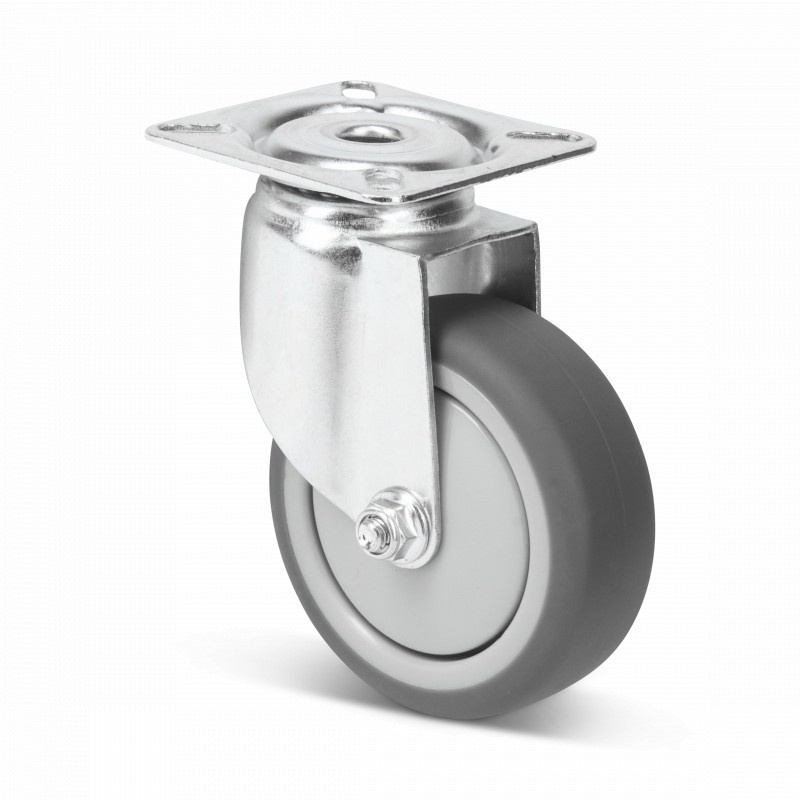 Rubber zwenkwiel 75 mm met plaat - 75 kg