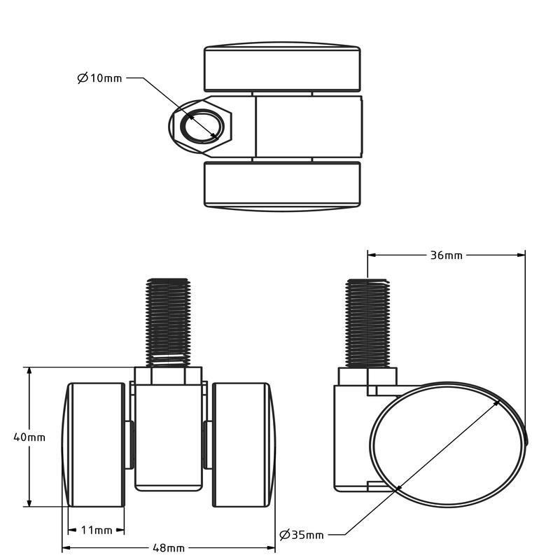 De meubel zwenkwielen zijn zorgvuldig samengesteld met materialen die speciaal zijn gekozen om krassen en strepen op harde vloeren te voorkomen. Deze wielen zijn voorzien van een duurzame, zachte donkergrijze band die gegarandeerd jarenlang meegaat op kwetsbare vloeren zoals parket, pvc, laminaat, en hout. Deze meubelrollen zijn geschikt voor harde en zachte vloeren.