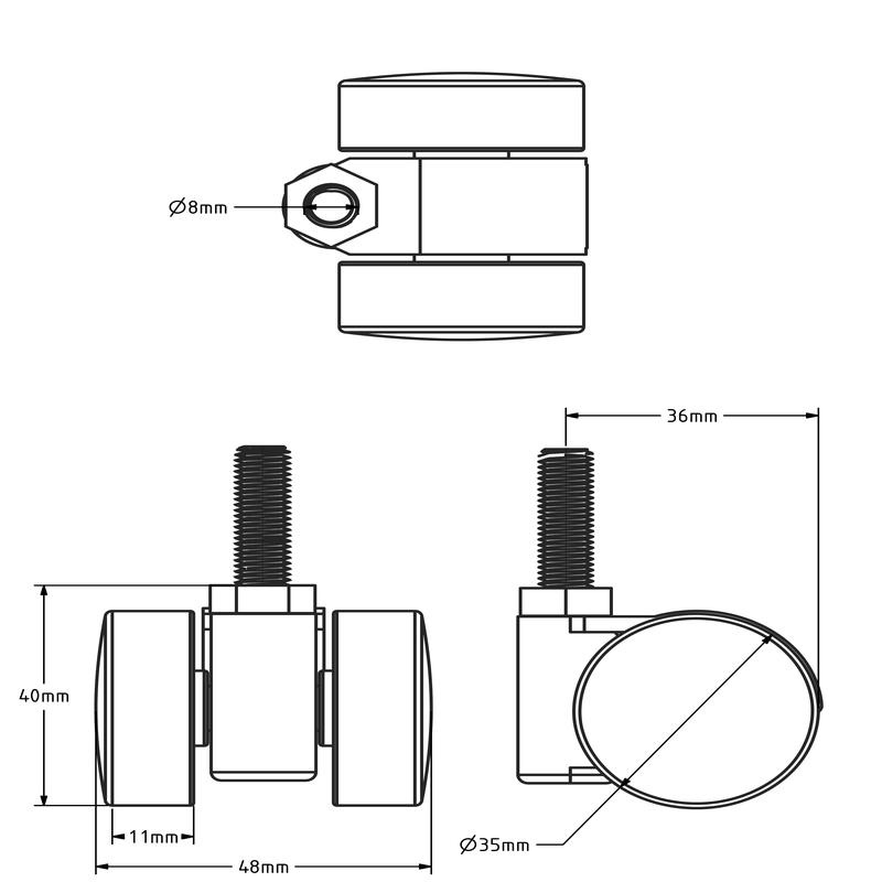 Zijn de huidige wielen toe aan vervanging? Meet met een schuifmaat op welke aansluitmaat het huidige wiel heeft, dit is 8mm / m8 of 10mm / m10. Meet vervolgens de lengte van de draadstift op om een keuze te maken tussen een lengte van 25 of 15 mm. Heeft u een keuze gemaakt tussen de aansluitmaat en de lengte dan kunt u uw nieuwe wielen gemakkelijk in het bestaande gat draaien. De draadstiften van je huidige wielen zijn in de meeste gevallen niet te combineren met onze meubelwielen. Wij leveren de meubelwielen met draadstiften, echter klikken wij ze er niet in. Dit doen wij zodat u de draadstiften eerst kunt passen voordat alle wielen onder de meubels of stoelen worden gemonteerd. Mochten de draadstiften toch niet passen dan kunt u altijd de (ongebruikte) wielen naar ons retourneren.