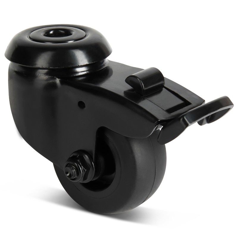Dit zwarte zwenkwiel met rem heeft een wieldiameter van 50 mm en een bouwhoogte van slechts 69 mm. Door het lage profiel is dit wiel ideaal voor toepassingen met beperkte inbouwruimte, zoals meubels, meetapparatuur of mobiele displays tot 50 kg. De geïntegreerde rem vergrendelt zowel wiel als zwenkfunctie in één beweging.